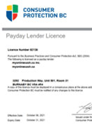 British Columbia Residents: The maximum fee allowed for a Payday Loan in BC is 14% of the